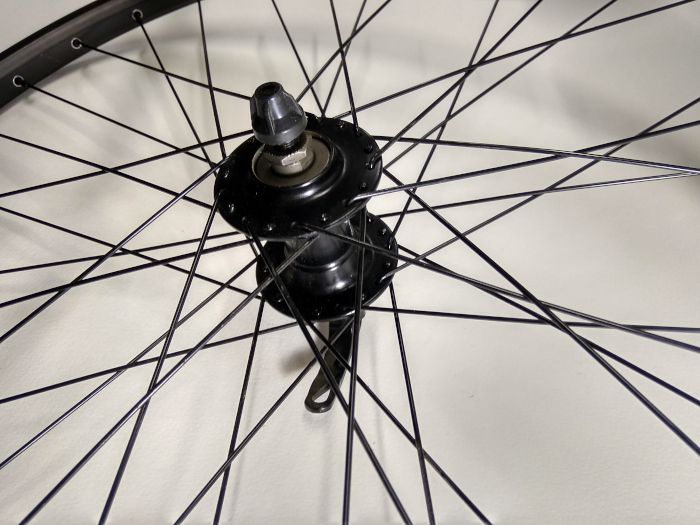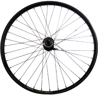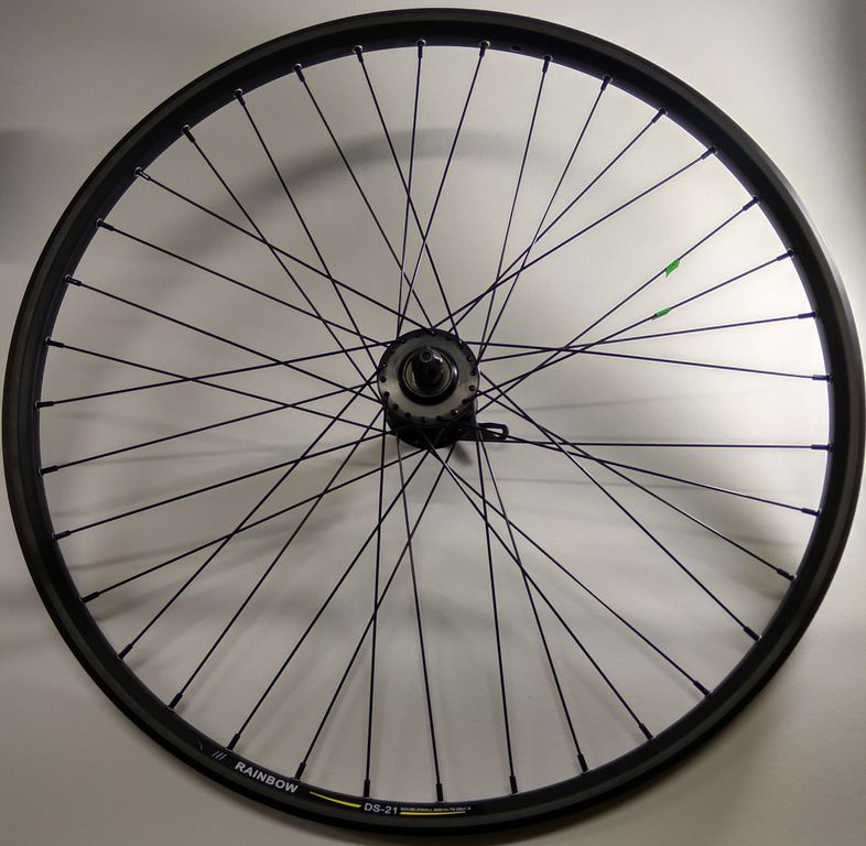 Колесо велосипедное переднее 26”, MTB, обод двойной пистонированный Rainbow DS-21, ширина - 26 мм, количество спиц - 36, втулка Shunfeng под дисковый тормоз (6 болтов), эксцентрик, цвет черный