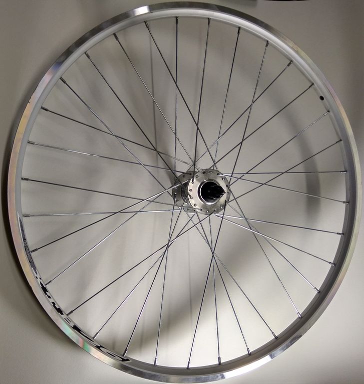 Колесо велосипедное переднее 26”, обод двойной Weinmann XTB-26, 559x20, ширина 24 мм, количество спиц - 32, втулка Xposure (Joytech, JY-D041DSE), эксцентрик, диск 6 болтов, цвет серебристый, арт. H000008386
