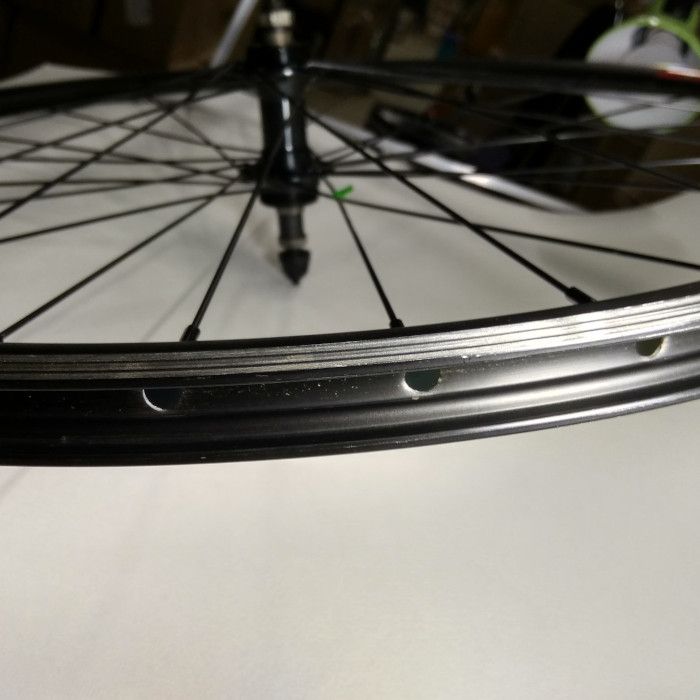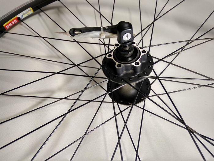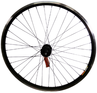 Колесо велосипедное переднее 700С, обод двойной Rainbow DH25, ширина 24 мм, количество спиц - 36, втулка Shimano HB-M525A (Малазия) под дисковый тормоз (6 болтов), эксцентрик, цвет черно-серебристый