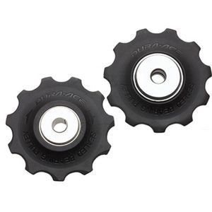 Комплект Shimano Dura Ace из 2-х роликов для заднего переключателя на 10 скоростей. Пониженное сопротивление качению: 2 герметичных промышленных подшипника, высокопрочный пластик.