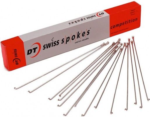 Спица облегченная DT Swiss Competition без ниппеля, диаметр по краям - 2.0 мм диаметр в середине - 1.8 мм, длина 299, цвет серебристый.