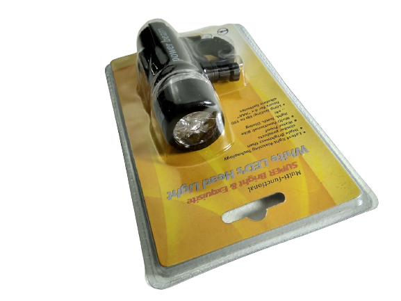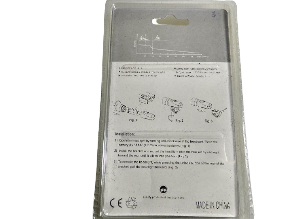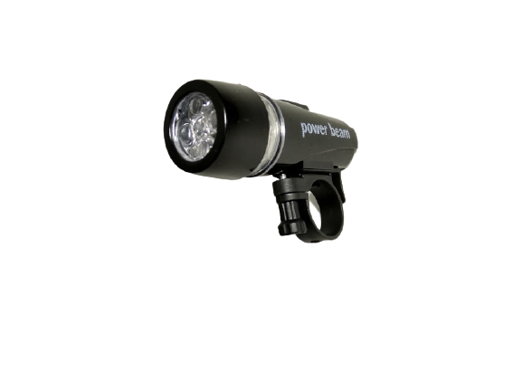 Велофара передняя Powerbeam FY-102, цвет черный. Четыре батарейки "ААА" дают свет в течение 150 часов. Размеры: около 98x34 мм (Д x Г).