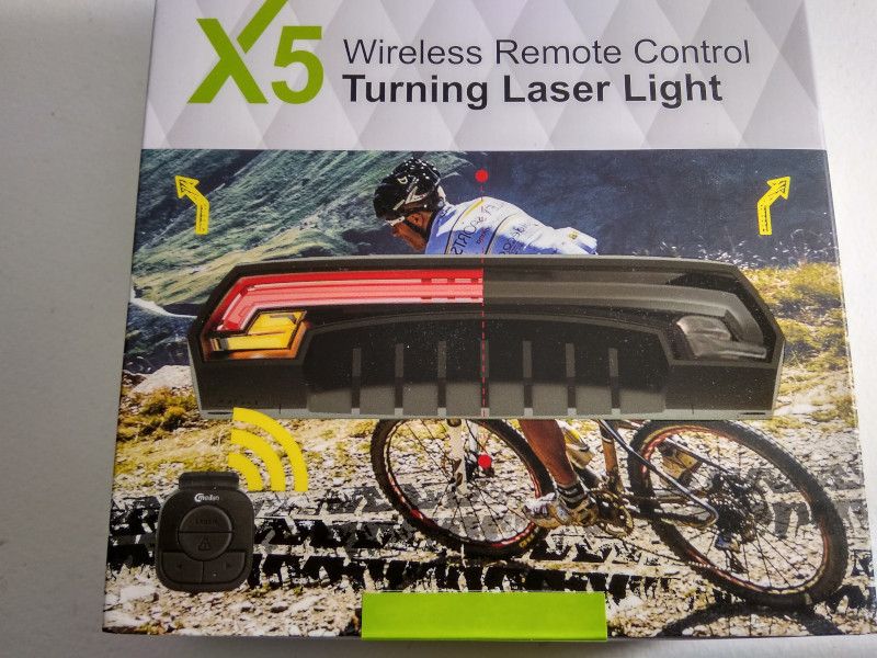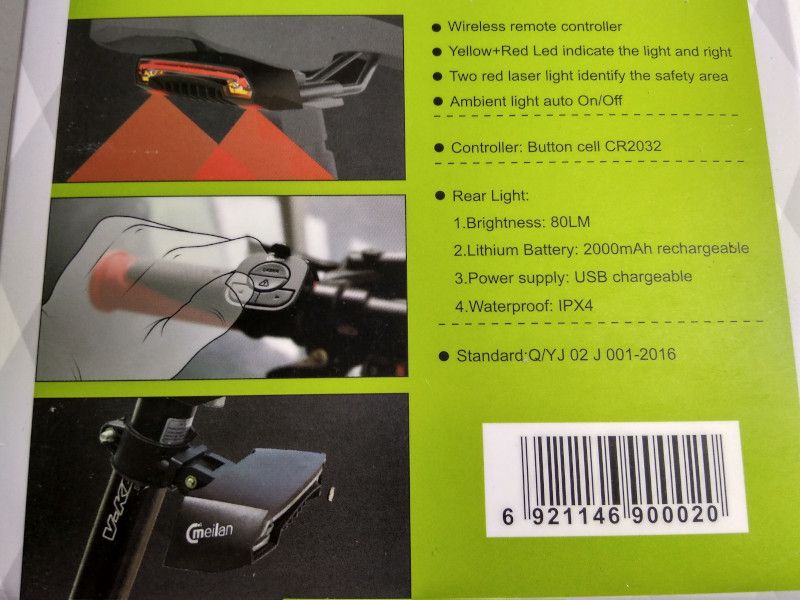 Велофонарь-мигалка задний Cmeilan X5 с поворотниками, 2000mAh, цвет черный, арт. MLX518D012118, Q-YJ02J001-2016. Режимы работы фонаря: максимальный, средний, минимальный, мигающий, режим SOS. Фонарь крепится к подседельному штырю, а пульт - к рулю. Связь между фонарем и пультом управления - беспроводная. Имеется лазерная подсветка.