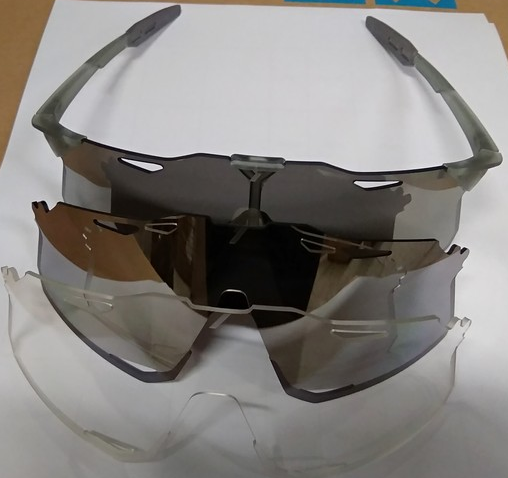 Реплика очков 100% в серой оправе с 3-мя линзами (зеркальные, прозрачные, темные) в черном футляре.